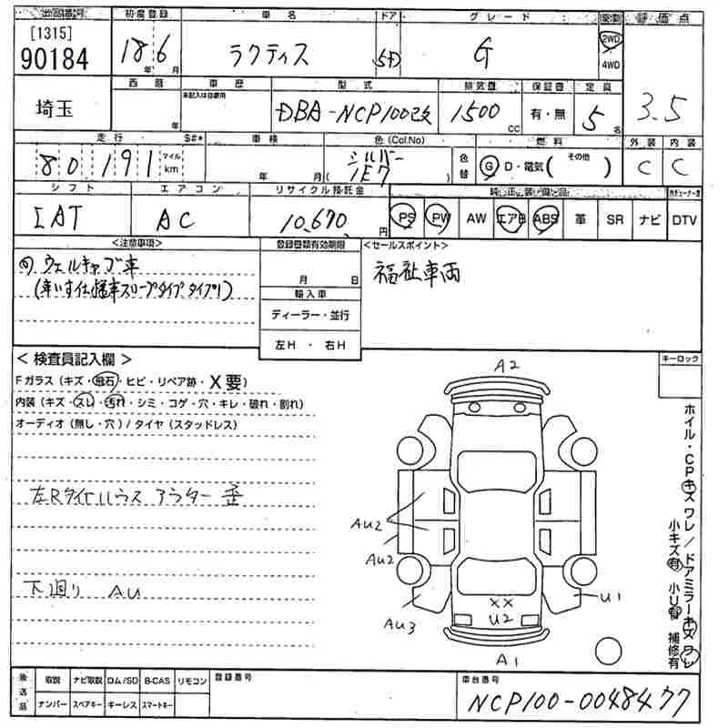 Toyota RACTIS с аукциона Японии MIRIVE Saitama лот № 90184