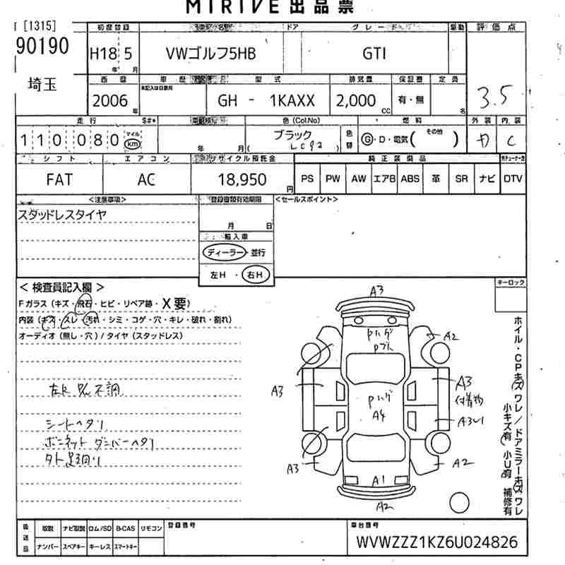 Volkswagen GOLF с аукциона Японии MIRIVE Saitama лот № 90190