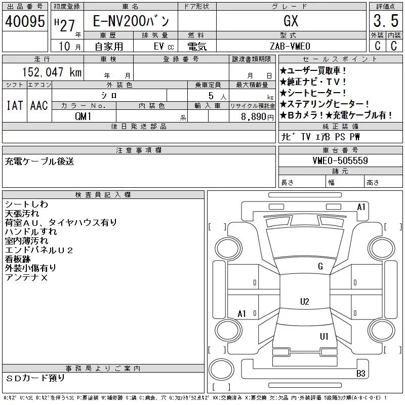 Nissan NV200 с аукциона Японии CAA Chubu лот № 40095