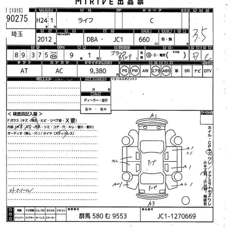 Honda LIFE с аукциона Японии MIRIVE Saitama лот № 90275
