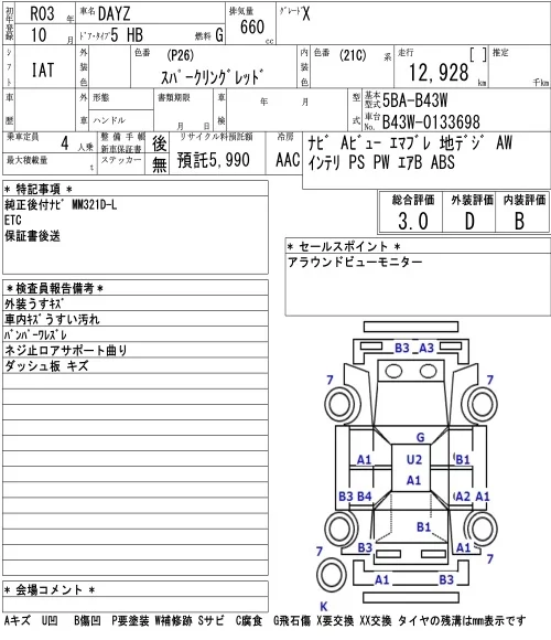 Nissan DAYZ с аукциона Японии NAA Osaka лот № 3090