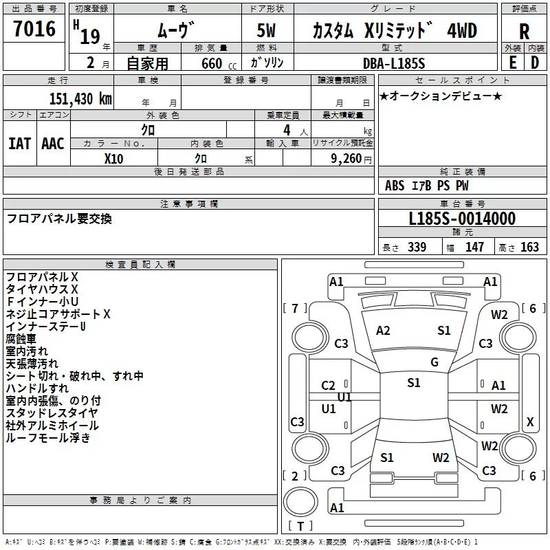 Daihatsu MOVE с аукциона Японии TAA Hokkaido лот № 7016
