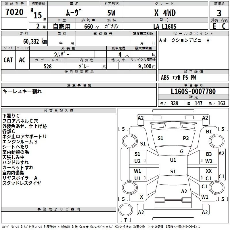Daihatsu MOVE с аукциона Японии TAA Hokkaido лот № 7020