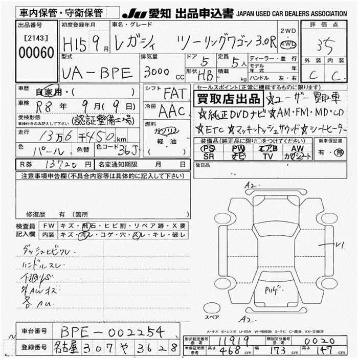 Subaru LEGACY с аукциона Японии JU Aichi лот № 60