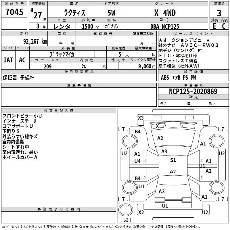 Toyota RACTIS с аукциона Японии TAA Hokkaido лот № 7045