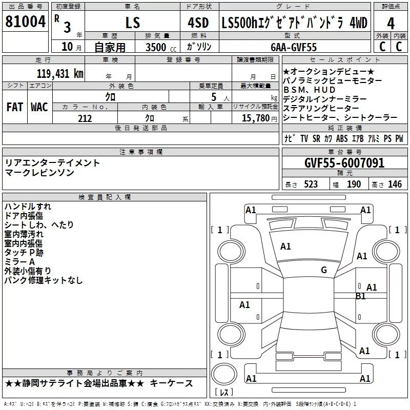 Lexus LS с аукциона Японии TAA Chubu лот № 81004