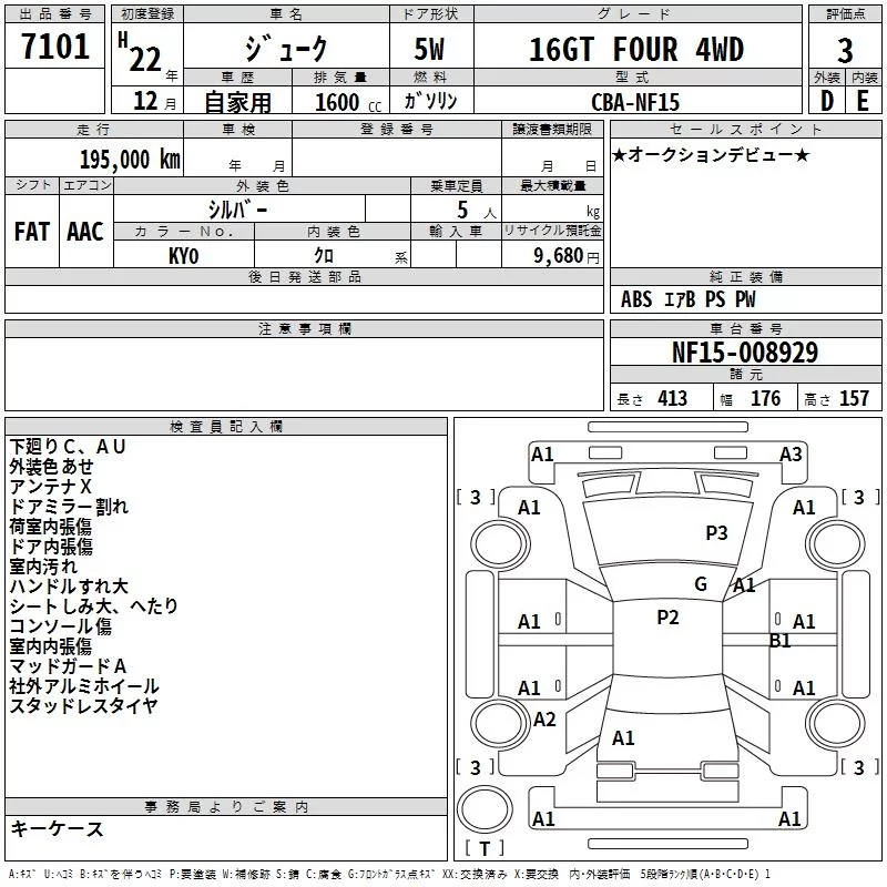 Nissan JUKE с аукциона Японии TAA Tohoku лот № 7101