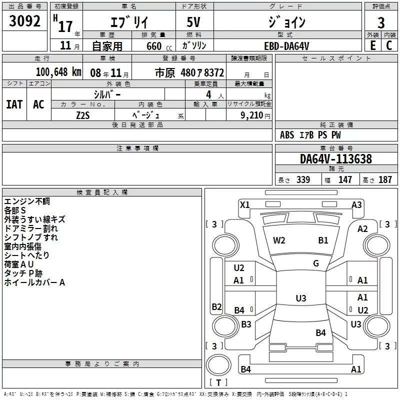 Suzuki EVERY с аукциона Японии TAA Kanto лот № 3092