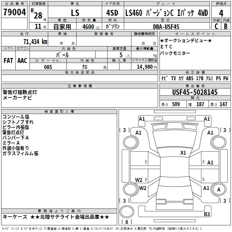 Lexus LS с аукциона Японии TAA Chubu лот № 79004