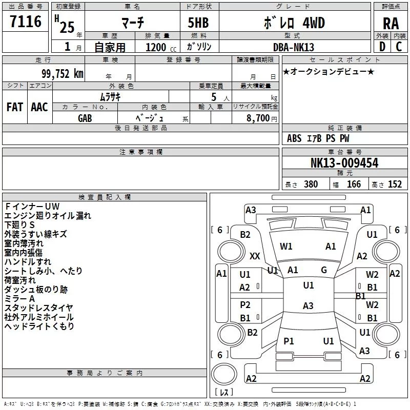 Nissan MARCH с аукциона Японии TAA Hokkaido лот № 7116
