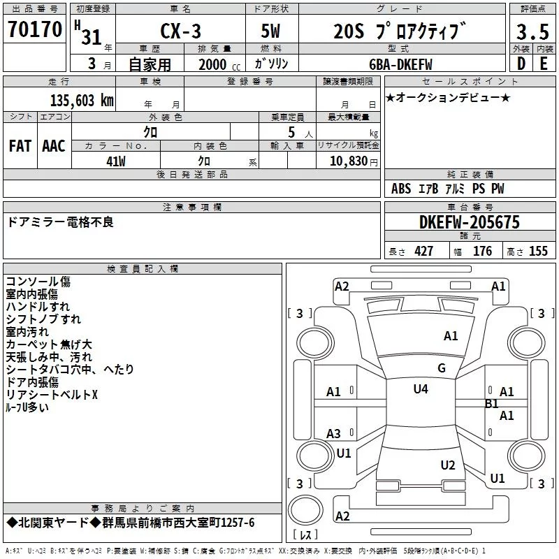 Mazda CX-3 с аукциона Японии TAA Kanto лот № 70170