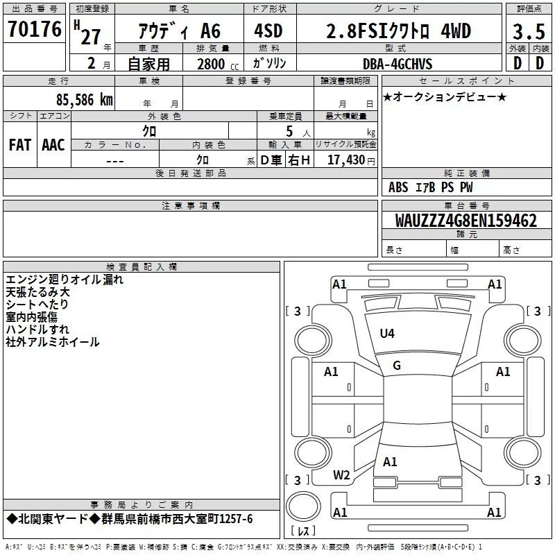 Audi A6 с аукциона Японии TAA Kanto лот № 70176