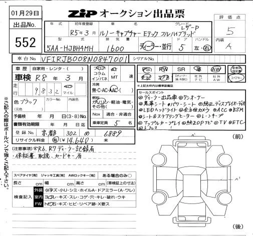 Renault Captur с аукциона Японии ZIP Osaka лот № 552