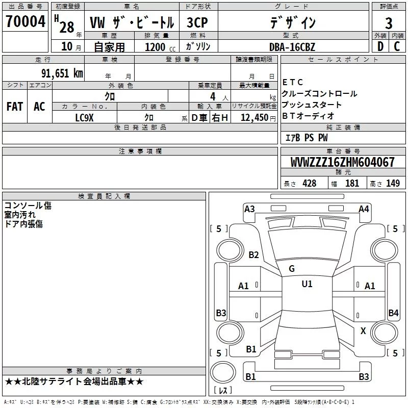 Volkswagen THE BEETLE с аукциона Японии TAA Chubu лот № 70004