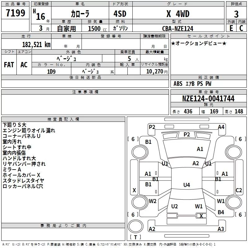 Toyota COROLLA с аукциона Японии TAA Hokkaido лот № 7199