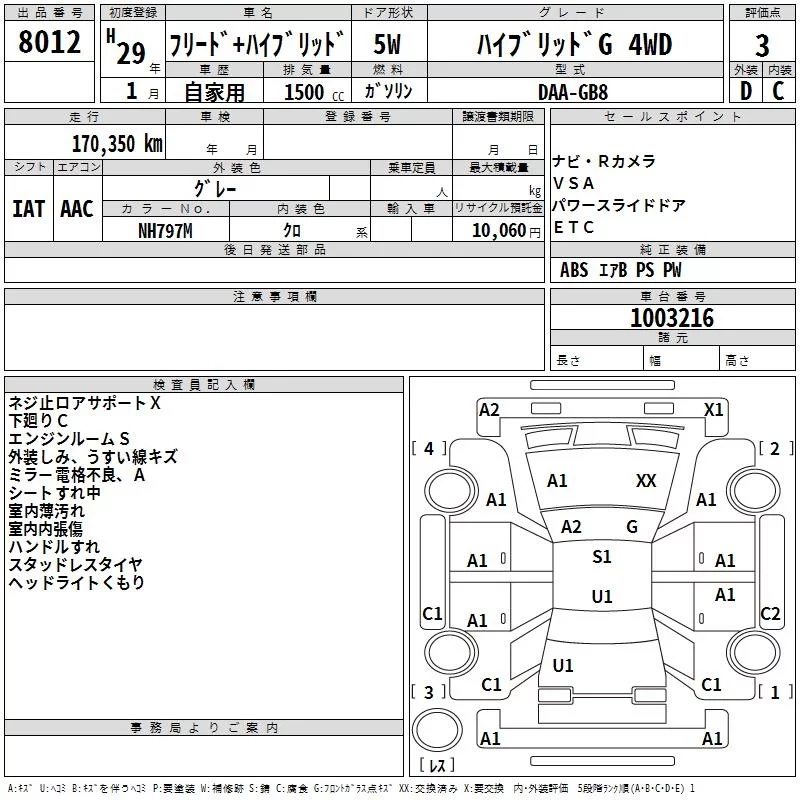Honda FREED с аукциона Японии TAA Hokkaido лот № 8012