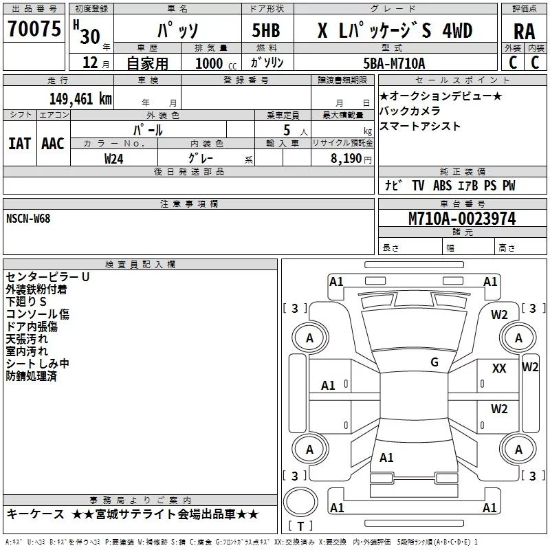 Toyota PASSO с аукциона Японии TAA Tohoku лот № 70075