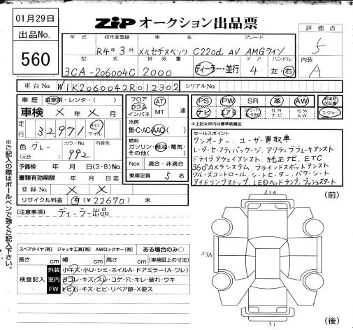 Mercedes-Benz C CLASS с аукциона Японии ZIP Osaka лот № 560
