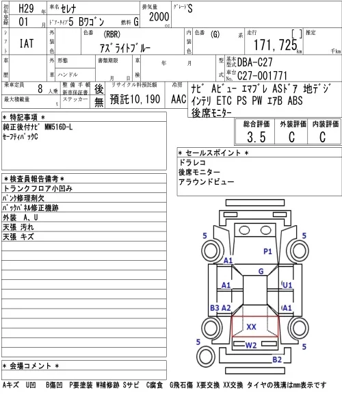 Nissan SERENA с аукциона Японии NAA Nagoya лот № 4087