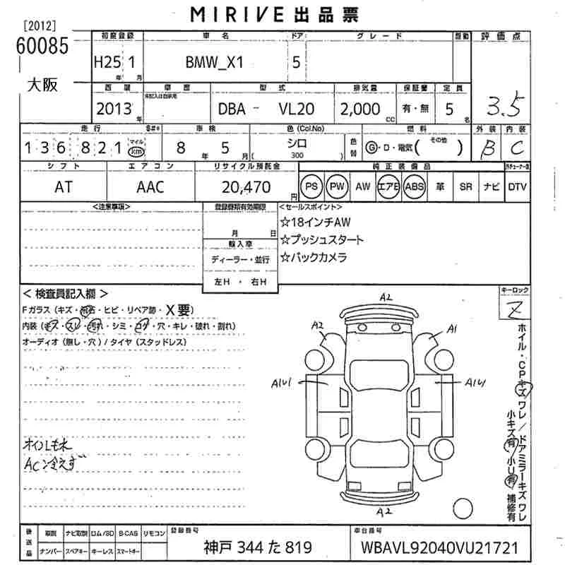 BMW X1 с аукциона Японии MIRIVE Osaka лот № 60085