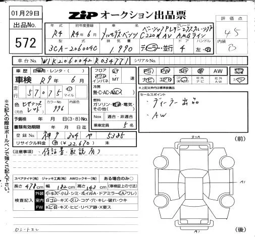 Mercedes-Benz C CLASS с аукциона Японии ZIP Osaka лот № 572