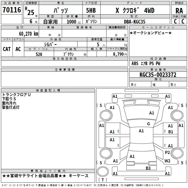 Toyota PASSO с аукциона Японии TAA Tohoku лот № 70116