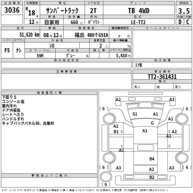 Subaru SAMBAR с аукциона Японии TAA Tohoku лот № 3036