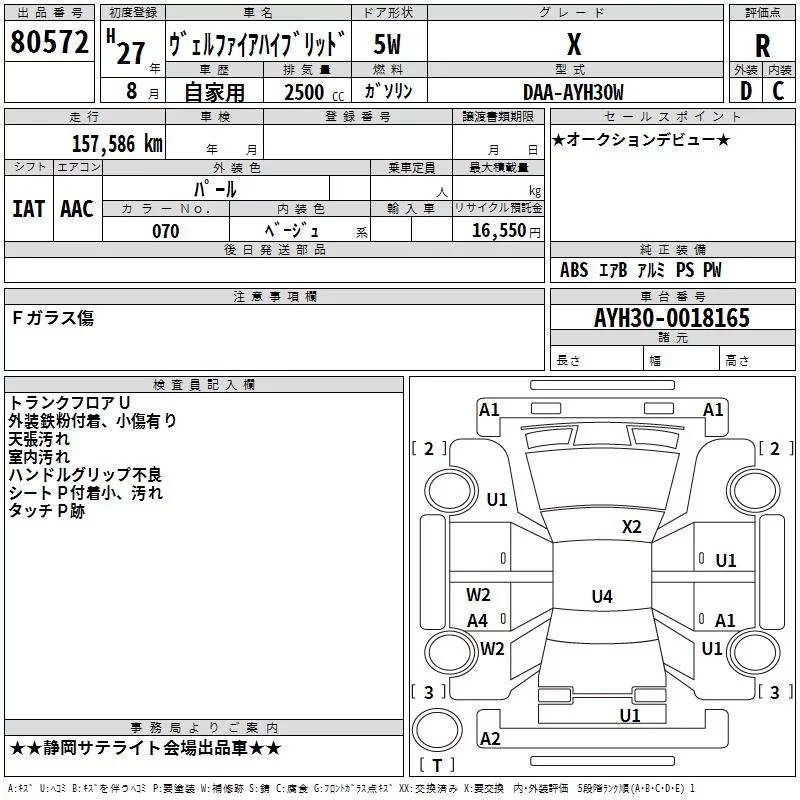 Toyota VELLFIRE с аукциона Японии TAA Chubu лот № 80572
