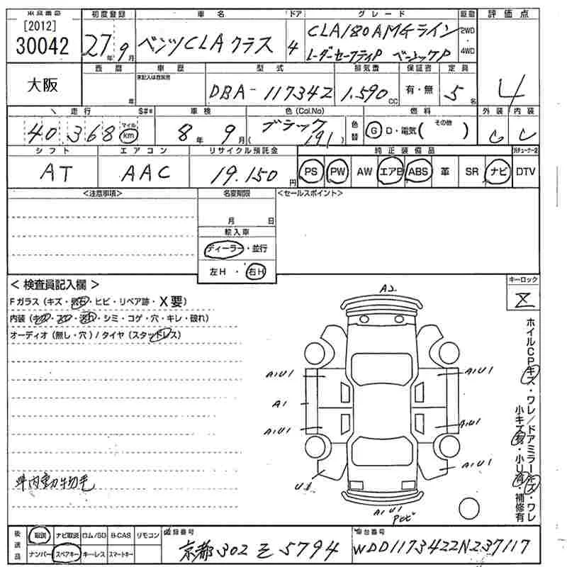Mercedes-Benz CLA CLASS с аукциона Японии MIRIVE Osaka лот № 30042