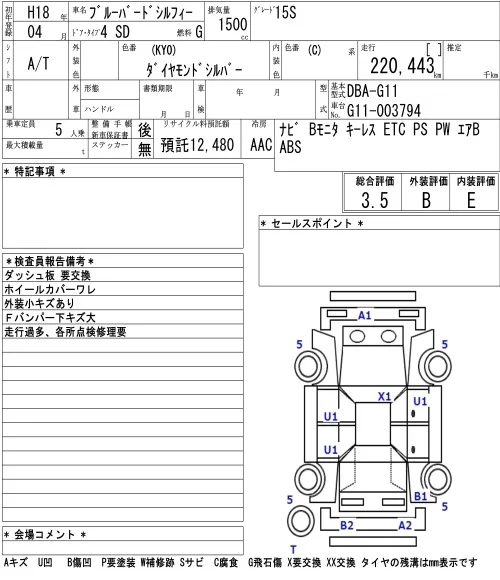 Nissan SYLPHY с аукциона Японии NAA Osaka лот № 7003