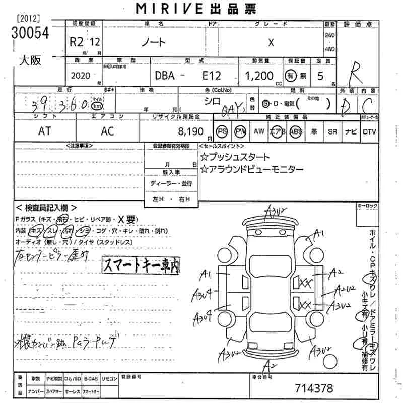 Nissan NOTE с аукциона Японии MIRIVE Osaka лот № 30054