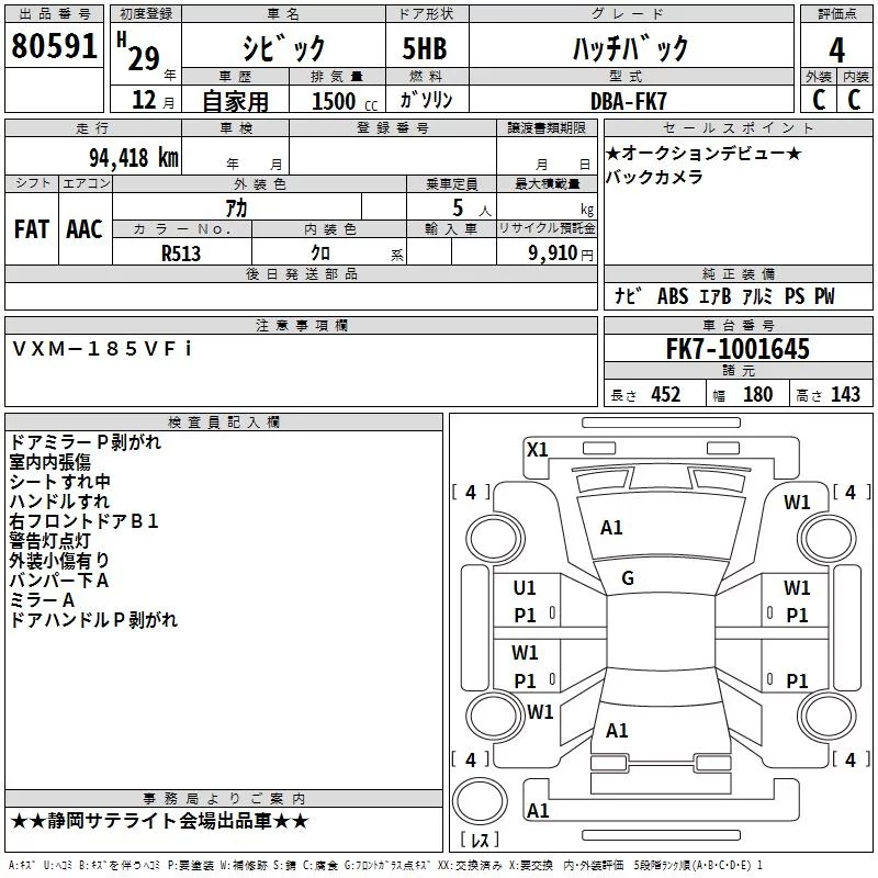 Honda CIVIC с аукциона Японии TAA Chubu лот № 80591