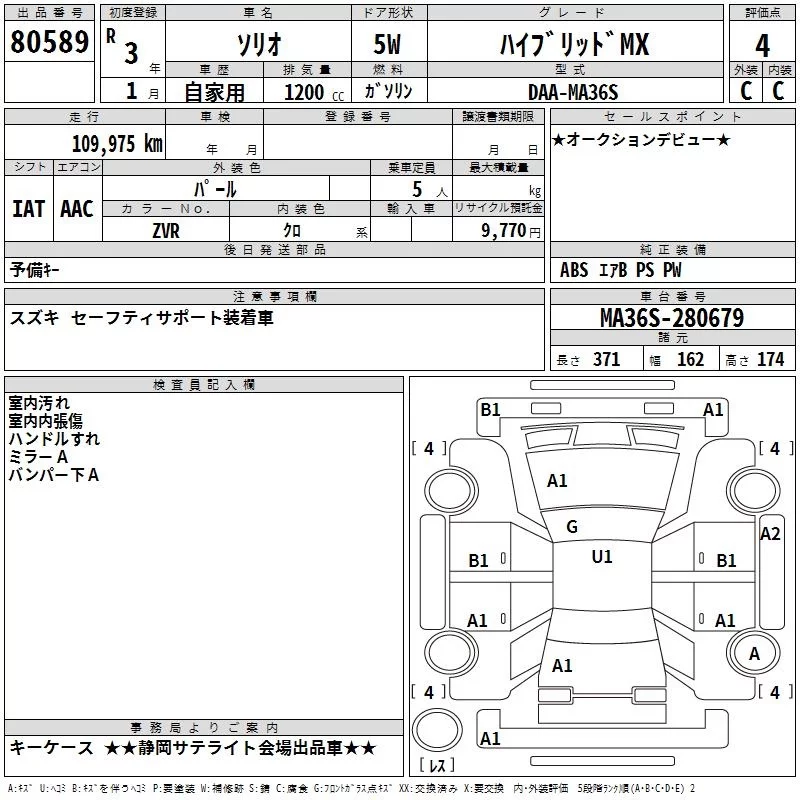 Suzuki SOLIO с аукциона Японии TAA Chubu лот № 80589