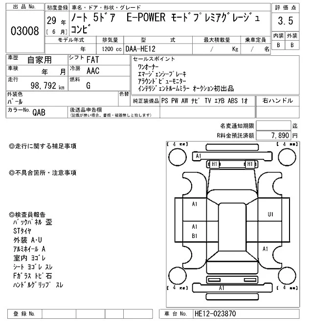 Nissan NOTE с аукциона Японии ARAI Oyama лот № 3008