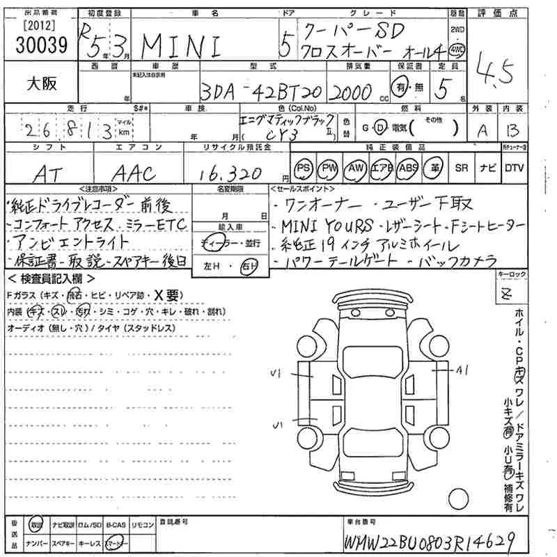 BMW MINI с аукциона Японии MIRIVE Osaka лот № 30039