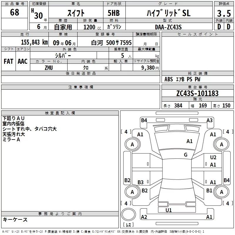 Suzuki SWIFT с аукциона Японии TAA Tohoku лот № 68