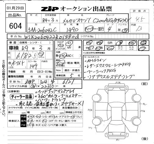 Mercedes-Benz C CLASS с аукциона Японии ZIP Osaka лот № 604
