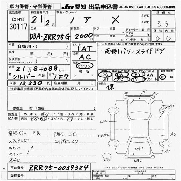 Toyota NOAH с аукциона Японии JU Aichi лот № 30117