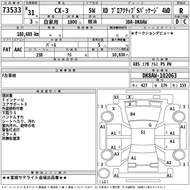 Mazda CX-3 с аукциона Японии TAA Tohoku лот № 73533