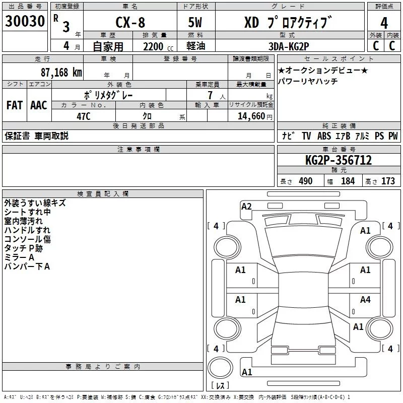 Mazda CX-8 с аукциона Японии TAA Chubu лот № 30030