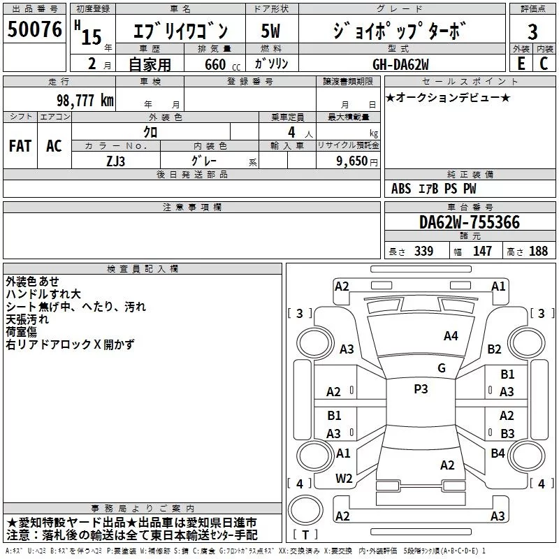 Suzuki EVERY WAGON с аукциона Японии TAA Chubu лот № 50076