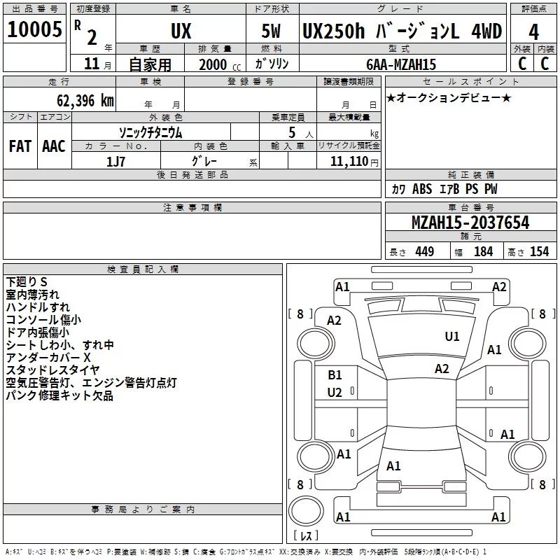 Lexus UX с аукциона Японии TAA Hokkaido лот № 10005