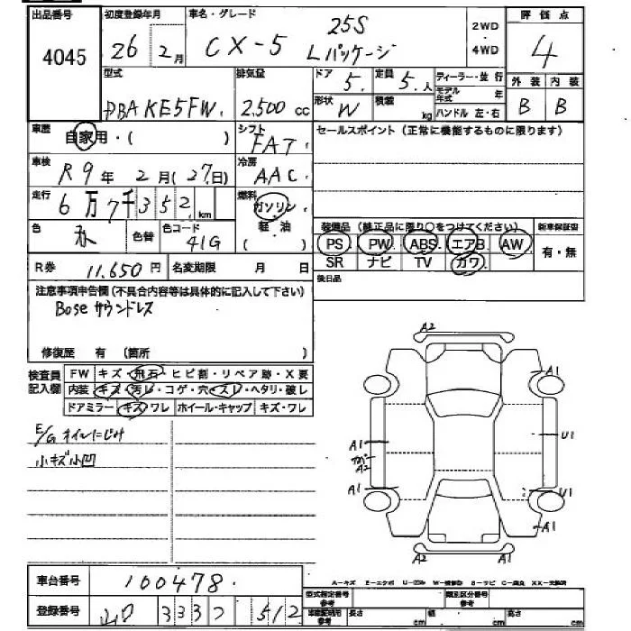 Mazda CX-5 с аукциона Японии JU Hiroshima лот № 4045