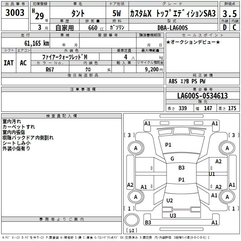 Daihatsu TANTO с аукциона Японии TAA Chubu лот № 3003