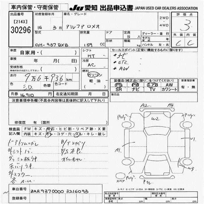 Alfa Romeo 147 с аукциона Японии JU Aichi лот № 30296