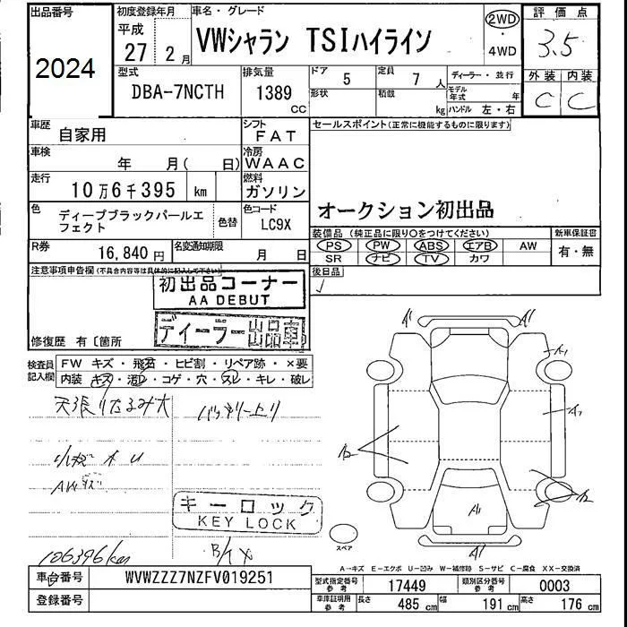 Volkswagen SHARAN с аукциона Японии JU Fukushima лот № 2024