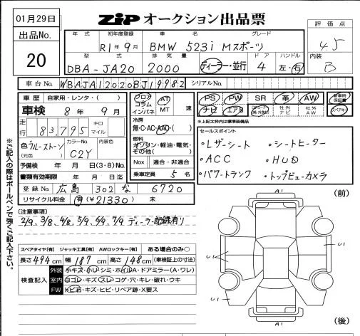 BMW 5-Series с аукциона Японии ZIP Osaka лот № 20