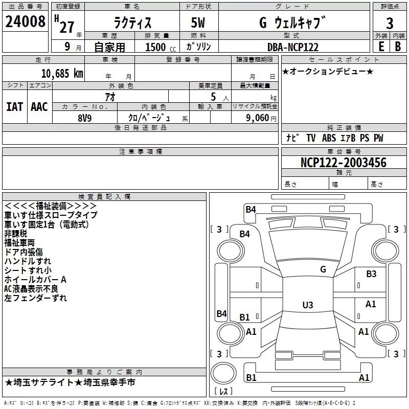 Toyota RACTIS с аукциона Японии TAA Kanto лот № 24008