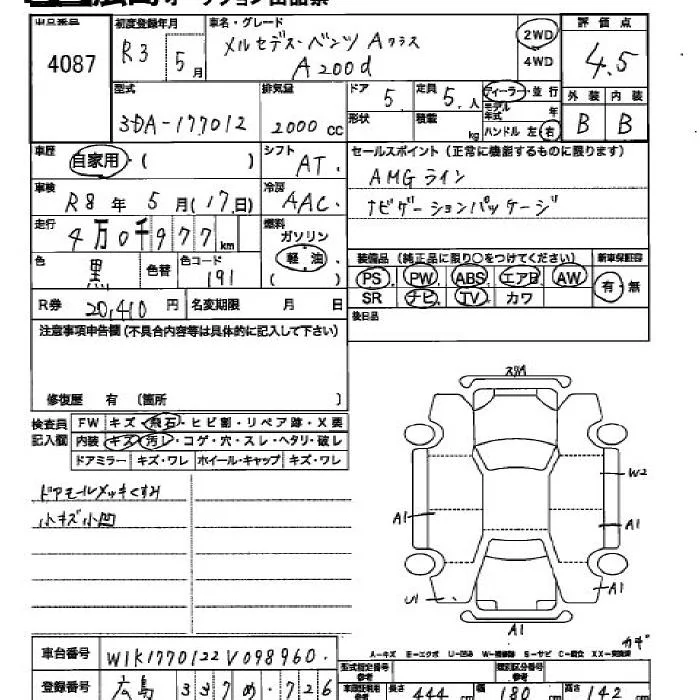 Mercedes-Benz A CLASS с аукциона Японии JU Hiroshima лот № 4087