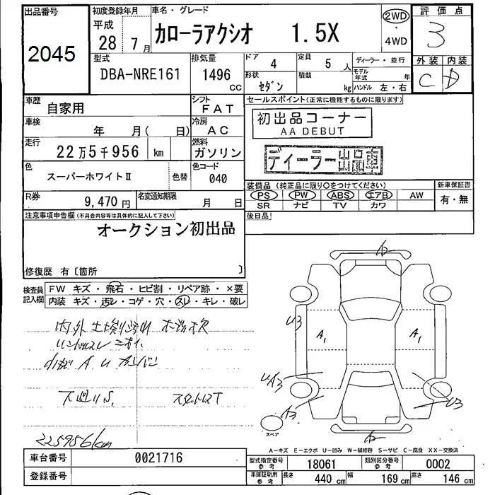 Toyota COROLLA AXIO с аукциона Японии JU Fukushima лот № 2045